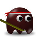 This features a cartoon character with a bandana around its head, giving it an adventurous and playful appearance. It is holding a green stick in one hand and a banana in the other, creating a unique and funny scene. The character's design resembles that of Pac-Man, adding to the nostalgic charm of the image. Overall, this cartoon character with its bandana and props evokes a sense of playfulness and adventure.