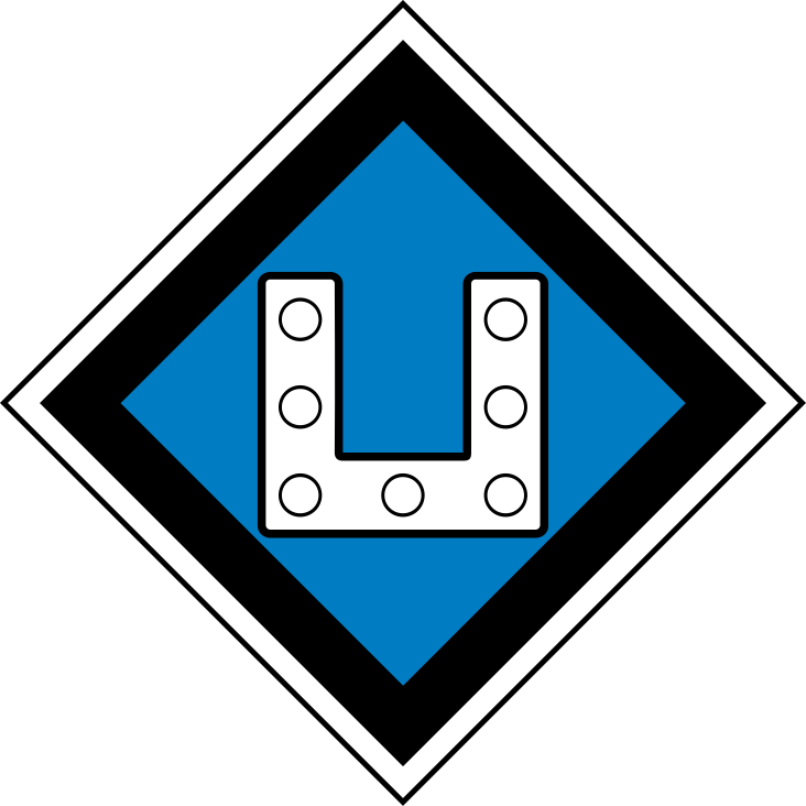 This features a blue and black square with a white outline. Inside the square, there is an illustration of a large U-shaped object made up of smaller squares. This unique design gives it a distinctive appearance. The overall color scheme of the image consists of shades of blue, black, and white, creating a visually appealing contrast.