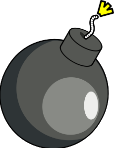 This features a cartoon bomb with a yellow crown on top, hanging from the side of a wall. It appears to be an artistic representation or a playful design rather than a real explosive device. The bomb is positioned in such a way that it seems to be falling off the wall, adding a sense of motion and action to the scene.