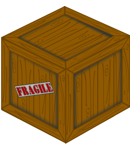This features a wooden crate with the word "Fragile" written on it in red. This signifies that the contents of the box are fragile and should be handled carefully to avoid damage. The crate is brown in color, giving it an old-fashioned appearance. It appears to be a sturdy container, suitable for transporting or storing delicate items.