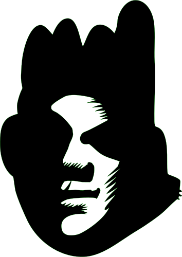 This features a black and white silhouette of a face, possibly representing a crown or a head. The face is prominently displayed in the center of the image, with its features clearly visible despite being in shadow. The contrast between light and dark areas creates an interesting visual effect that draws attention to the subject. This artistic representation could be used for various purposes such as decoration, branding or even as a symbolic representation of power or authority.