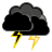 This features a cloudy sky with a lightning bolt symbol in the middle of it. This symbol is surrounded by dark clouds, giving an impression of a stormy weather. The lightning bolt appears to be yellow and orange, adding a vibrant touch to the otherwise gloomy scene. The cloudy sky occupies most of the image, with the lightning bolt being the focal point in the center.