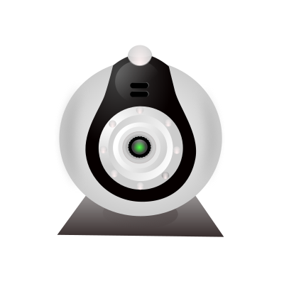 This features a close-up of an electronic device, possibly a webcam or a camera. It is positioned on a table and appears to be the main focus of the scene. The device has a black and white color scheme with a green light in the center, giving it a unique appearance. The overall composition of the image emphasizes the intricate details of the electronic device, making it an interesting subject for viewers.