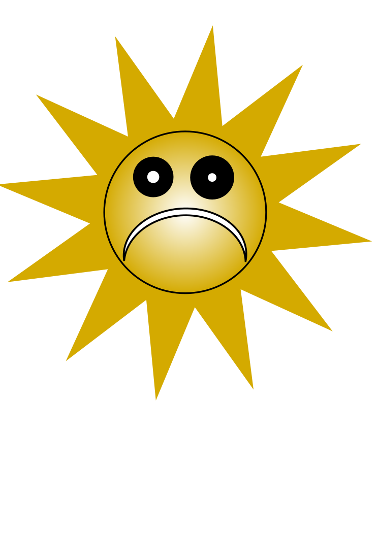 This features a yellow sun with a sad face drawn on it. The sun is positioned in the upper left corner of the picture, and its expression appears to be somewhat melancholic. The drawing of the sun's face adds an interesting touch to the otherwise simple image of the sun.