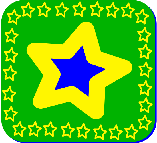This features a green and blue star with yellow stars surrounding it. The star is located in the center of the image, surrounded by numerous yellow stars that are scattered throughout the background. This colorful design gives the impression of a vibrant and lively atmosphere.