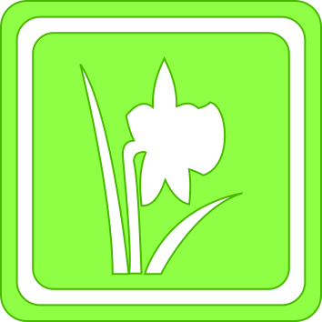This features a green square with an illustration of a flower. The flower is situated in the middle of the square, and it appears to be a white flower with green leaves. The square has a yellow background, which adds contrast to the flower's colors. This artistic representation of a flower can be used as a decorative element or for various purposes such as advertising, packaging, or even as an icon in software applications.