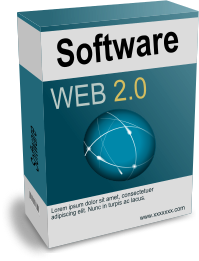The box is blue and green in color, with a picture of a globe on the front. It reads "Software Web 2.0" in white letters. The box appears to be a software package for web development.