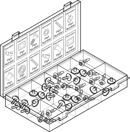 Tags: b-w, bolts, box, container, nuts, outline, part, storage, technical drawing, tool, toolbox, bolt, nut