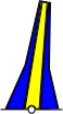 This features a blue and yellow triangle with a white dot in the middle. This unique design is reminiscent of a compass, as it has a pointy top and a circular bottom. The blue and yellow colors create an interesting contrast against each other, making this triangle stand out. The white dot serves as a focal point within the triangle, drawing attention to its center. Overall, the image presents a visually appealing and distinctive design that could be used for various purposes such as decoration or navigation tools.