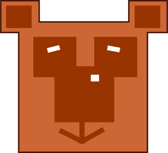 This features a cartoon bear with a brown color scheme. It has large, round eyes and a mouth that appears to be smiling. The bear's ears are positioned on top of its head, giving it a friendly appearance. The overall design is simple yet charming, making the bear an appealing character for children or those who enjoy cartoons.