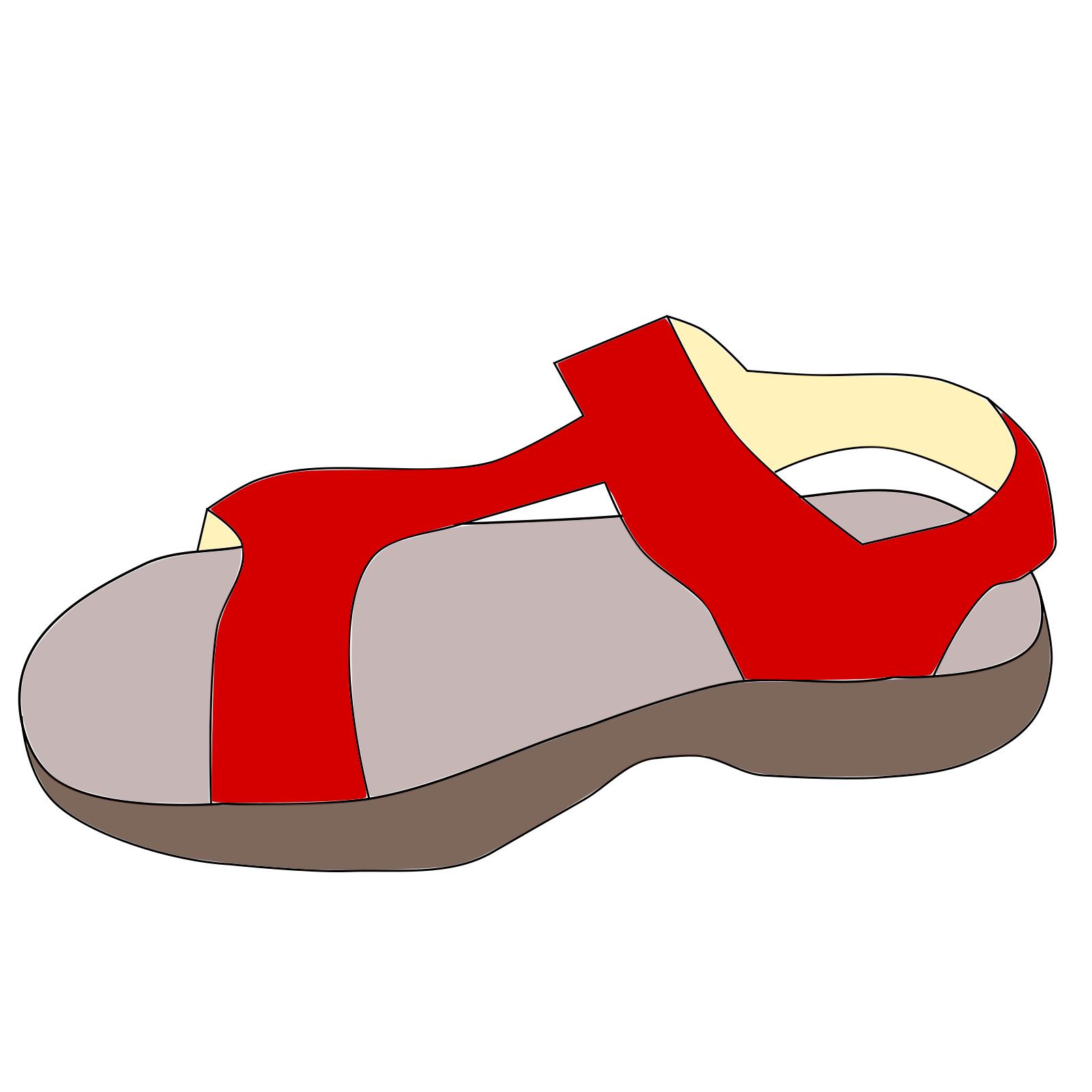 This features a red sandal with a white background. It is an artistic representation of the sandal, which could be used for creating icons or other visual elements. The sandal appears to be made from leather and has a strap across it. The color combination of red and white gives the sandal a bold and eye-catching appearance.