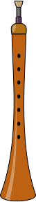 This features a wooden flute with a brown color, standing upright against a wall. It appears to be an artistic drawing or painting of the instrument, giving it a unique and creative appearance. The flute is positioned in the center of the scene, capturing attention as the main subject.