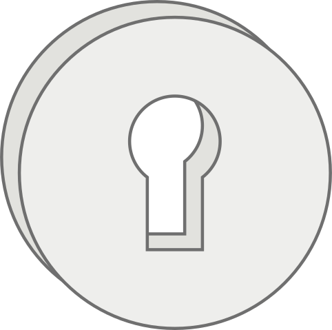 This features a keyhole with a large circle around it. Inside the circle, there is an outline of a key, which appears to be a stylized representation of a lock. The keyhole itself has a slightly rounded shape and is positioned towards the center of the circle. This design could be used for various purposes such as decoration or symbolizing security in a logo or other visual contexts.