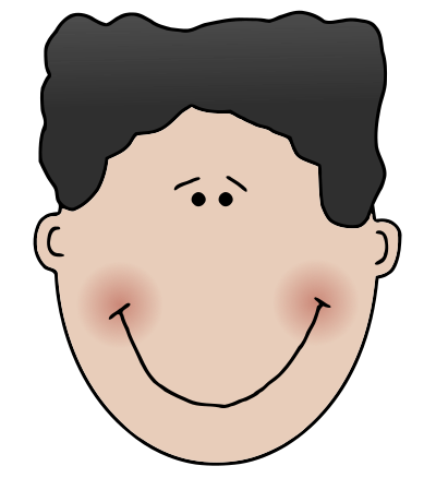 This features a cartoon drawing of a smiling face with brown hair. The face is round and has a large, wide smile that covers most of the mouth area. The eyes are closed, giving the impression of a happy and relaxed expression. The drawing appears to be in black and white, adding an artistic touch to the overall appearance.