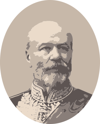 This is a vintage portrait of an older man with a beard and mustache. He appears to be wearing a military uniform, possibly a royal guard or a similar position. The man's attire includes a tie, which adds to the formality of his appearance. The photograph has been digitally altered, giving it a more modern look while still maintaining its historical context. The portrait is presented in a circular frame, emphasizing the subject and drawing attention to him as the main focus of the image.