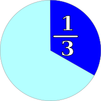 This features a blue circle with a slice of pie inside. The pie is mostly light blue and has a round shape. On the blue part of the pie, there is a 1/3 written in white. This indicates that this particular piece represents one-third of the entire pie. The color scheme of the image is predominantly blue, giving it a clean and organized appearance.