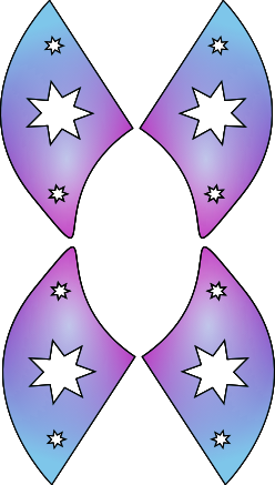 This features two purple and blue star-shaped decorations, each with a different design. One of the stars has a more prominent purple hue, while the other is predominantly blue. Both stars are adorned with white stars in various sizes, adding to their visual appeal. These unique designs create an interesting and eye-catching pattern that can be used for decorative purposes or as part of a larger artistic project.