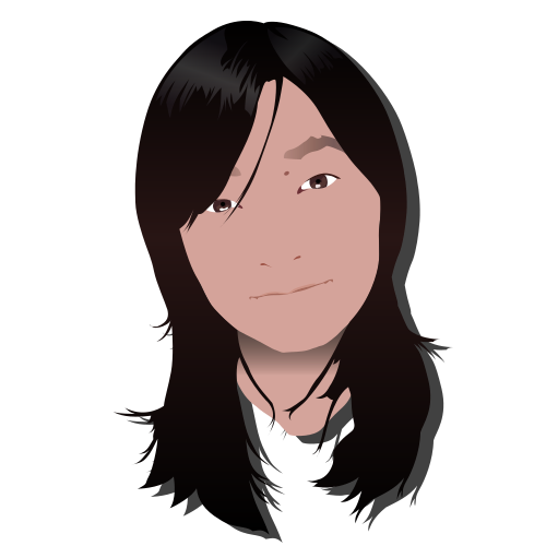 This is a colorful drawing of a woman with long black hair. She has a smiling expression on her face, and the drawing appears to be in a cartoon style. The woman's hair is styled in a ponytail, which adds to the overall visual appeal of the image. The drawing captures the essence of the subject, making it an interesting piece of artwork.