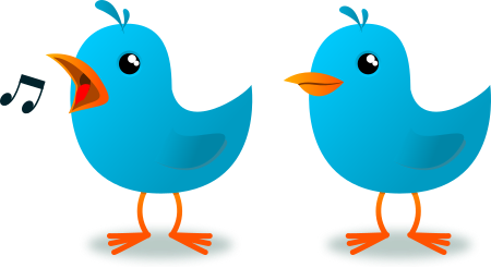 This features two cartoon birds standing next to each other, both with open mouths. One bird is singing a song while the other listens attentively. They are both blue in color and have big eyes, giving them an animated appearance. Their expressions convey a sense of joy as they engage in their musical activity together. The scene appears to be set against a white background, which further emphasizes the vibrant colors of the birds.