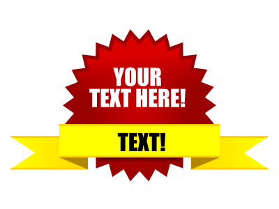This features a red and yellow ribbon with the words "Your Text Here" written in black. This ribbon is placed on top of a white background, making it stand out prominently. The design of the ribbon suggests that it could be used for various purposes such as awards or recognition, where the recipient can personalize their award by adding their own text.