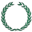 This features a white circle with green leaves, resembling a wreath. Inside the wreath, there is an oval shape that has a green laurel leaf design on it. This design gives the impression of a crown or a symbol of achievement. The overall appearance of the image suggests a sense of accomplishment or recognition.