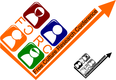 This features a logo for the Free Culture Research Conference. The logo consists of four different colored circles, each containing a person's head. These circles are arranged in a row and placed on top of one another to create an eye-catching design. The colors used for the circles are orange, green, blue, and red. The image also includes a small picture of a camera located at the bottom right corner of the logo. This adds a touch of detail and interest to the overall design. The combination of the vibrant colors and the unique arrangement of the circles make this logo stand out as an attractive representation of the Free Culture Research Conference.