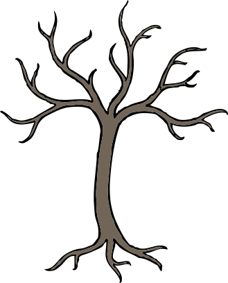 This features a tree with no leaves, depicted in black and white. It is an artistic representation of the tree's branches without any foliage. The tree has a large trunk that appears to be the main focus of the drawing. The absence of leaves on the tree creates a stark contrast against the background, which adds depth and interest to the image. This minimalist approach to illustrating the tree allows viewers to appreciate its structure and form without any distractions from foliage.