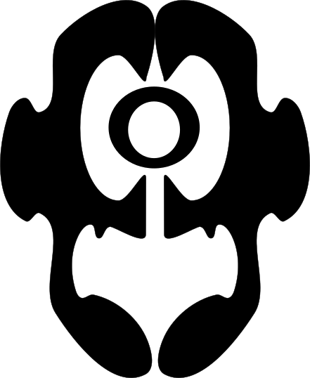 This features a black and white design of an eye, which is the central focus. Surrounding this eye are various shapes that create a unique pattern. These shapes include a circle located above the eye, another one below it, and two more on either side. Additionally, there are three smaller circles placed around the main eye shape, adding to the intricate design of the image. The overall composition creates an interesting visual effect with the central eye as the focal point.
