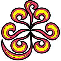This features a colorful, intricate design that resembles a flower or a swirling pattern. It is composed of multiple layers and shapes, creating an eye-catching visual effect. The colors used in the design are predominantly yellow and red, with some black accents as well. The overall composition gives off a sense of depth and complexity, making it an interesting and unique piece of art or decoration.