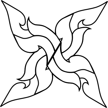 This features a black and white design of an intricate pattern, possibly resembling a cross or a swirl. The pattern is composed of multiple interconnected lines that create a visually striking appearance. The contrast between the black and white colors adds depth to the design, making it stand out against any background. This artistic piece could be used for various purposes such as decoration, branding, or even as an abstract representation of a concept.