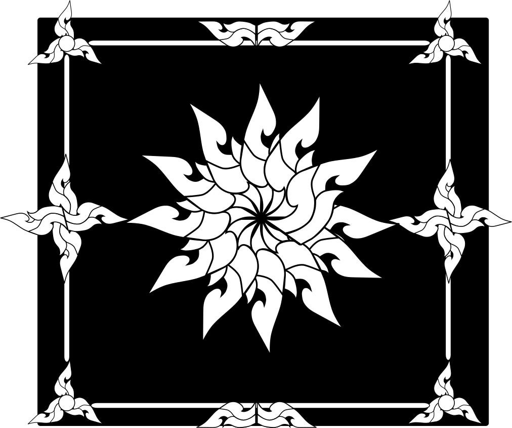 This features a black and white design with an intricate pattern of swirls. This artistic piece is reminiscent of Thai art, showcasing the beauty and craftsmanship that goes into creating such designs. The swirls are interconnected, forming a circular shape in the center of the design. The overall effect is one of elegance and sophistication, making it an appealing piece for those who appreciate fine art and cultural influences.