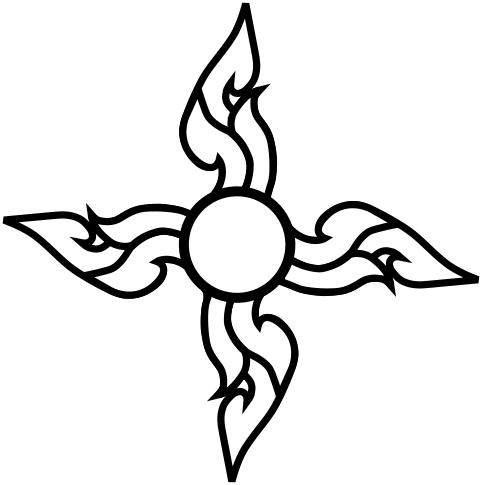 This features a black and white drawing of an ornate cross. The cross is adorned with flames, giving it a striking appearance. The design appears to be intricate and detailed, showcasing the artist's skill in creating this unique piece of art. The cross stands out against its background, making it the focal point of the image.