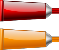 This features two red and orange colored tubes of paint, each with a different shade. They are placed side by side in the scene, creating an interesting contrast between their colors. These tubes appear to be made of plastic and have a slightly curved shape, making them easy to hold and use for painting purposes. The vibrant colors of these tubes make them visually appealing and suitable for various artistic projects or creative endeavors.
