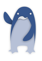 This features a cute penguin with its arms outstretched, standing on two feet. It appears to be waving at the viewer in a friendly manner. The penguin is positioned towards the left side of the image and takes up most of the frame. Its body is blue, while its feet are white, adding contrast to the scene. This charming penguin could be used as an emblem or mascot for various occasions or simply as a decorative element in someone's collection.