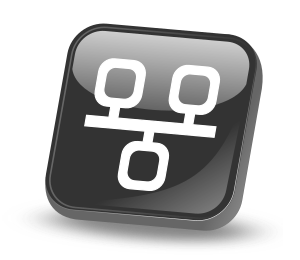 This features a black square with a white outline, which is an icon for a network. Inside the square, there are two smaller squares, one on top of the other, and each has a single dot in it. This unique design gives the impression that the icon represents a person or a character. The overall appearance of the image suggests that it could be used as a logo or symbol for a company or organization related to networking or technology.