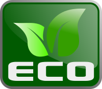 This features a green leaf with the word "ECO" written on it. This symbol represents an eco-friendly or environmentally conscious message, possibly related to sustainable practices and products. The green color of the leaf suggests that the focus is on preserving nature and promoting environmental awareness.