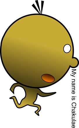 This features a cartoon character with a funny face, running and jumping in the air. It appears to be an animated figure, possibly from a comic or video game. The character is wearing a name tag that reads "Chakulae," which adds a personal touch to the scene. The overall atmosphere of the image is light-hearted and entertaining, with the cartoon character being the main focus.
