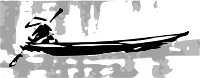This features a black and white drawing of a man in a conical hat, paddling a boat on the water. He is positioned towards the left side of the scene, with his oar visible as he navigates through the water. The boat itself occupies most of the right side of the image, extending from the middle to almost the entire width of the frame. The drawing captures the essence of a peaceful and serene moment on the water, showcasing the man's skill in handling his paddle.