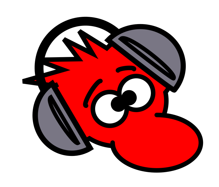 This features a red cartoon character wearing headphones. It is an illustration of the character with its eyes wide open, giving it a surprised or curious appearance. The headphones are placed on top of the character's head, and they appear to be large in comparison to the size of the character itself. This whimsical image captures the essence of a fun and playful atmosphere.