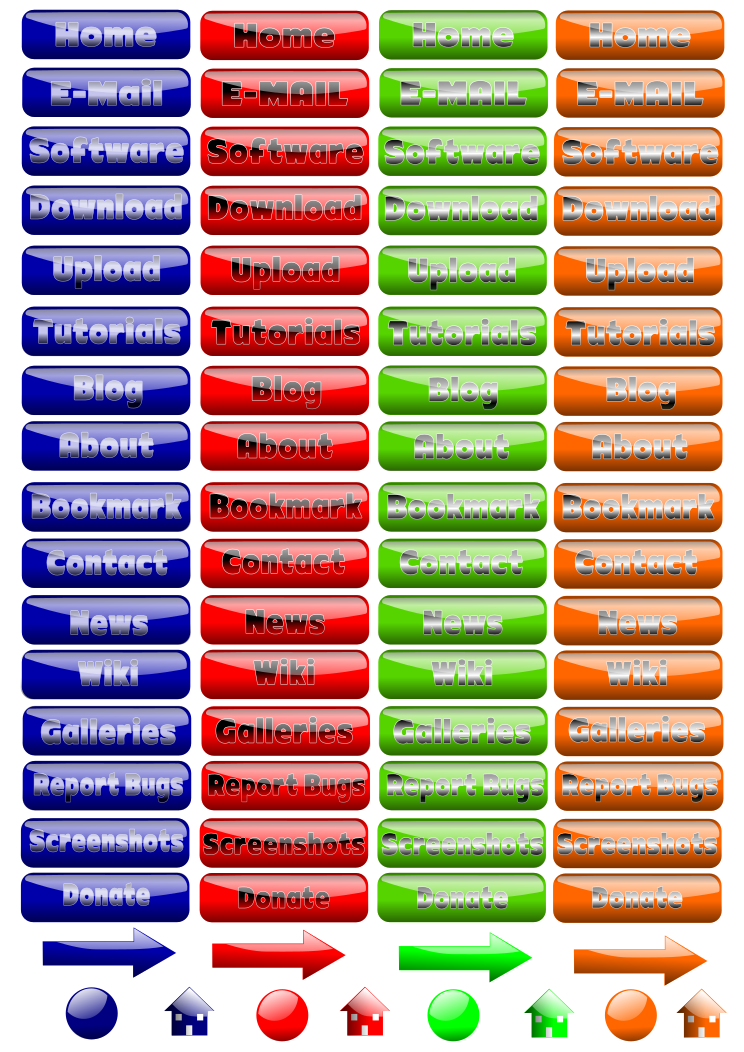 This displays a collection of buttons, each with different colors and text. There are at least 13 buttons visible in the scene, arranged in rows and columns. Some of the buttons have words like "Home" or "Contact," while others feature more specific labels such as "Download." The buttons appear to be organized in a way that makes it easy for users to find what they're looking for. Overall, the image showcases an array of functional buttons that can be used for various purposes.