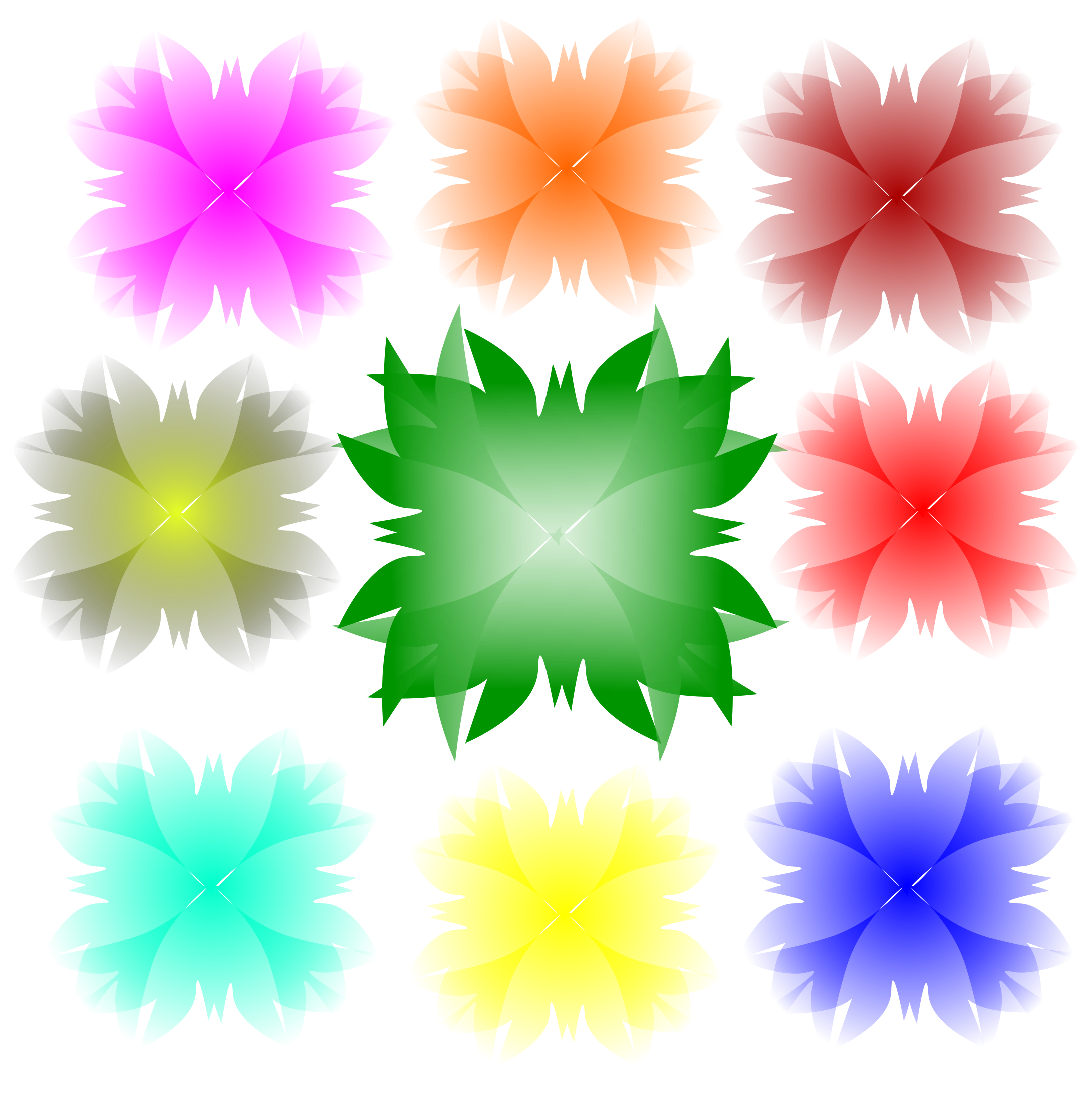 This features a collection of six different colored flowers, each with unique shapes and designs. These colorful flowers are arranged in a circular pattern, creating an eye-catching display. Each flower is distinct from the others, showcasing their individual beauty and vibrant colors. The arrangement of these flowers creates a visually appealing composition that captures attention and adds a touch of natural charm to any space they adorn.