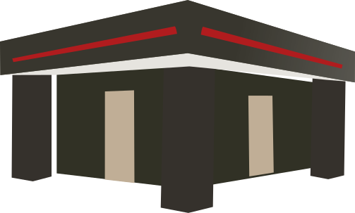 This features a large building with several windows. The building has a brown and red color scheme, giving it an old-fashioned appearance. There are four visible windows on the front of the building, each one slightly different in size and position. The overall design of the building suggests that it could be a fair or saloon stand, providing a unique atmosphere for visitors to enjoy.