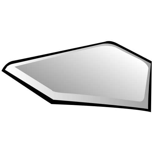 This features a large, square-shaped object with a slightly curved top. It appears to be made of metal and has a reflective surface that gives it an almost mirror-like appearance. The shape of the object is reminiscent of a home plate in baseball or a shield, but its exact purpose cannot be determined from the image alone. The overall composition of the image creates a sense of depth and dimension, with the square-shaped metal piece taking up most of the frame.