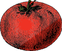 This features a large, red tomato with a green stem. It is depicted in an engraving style, giving it a detailed and artistic appearance. The tomato appears to be the main focus of the image, occupying most of the frame. The engraving technique used for this piece adds depth and texture to the overall composition, making it visually appealing and interesting.