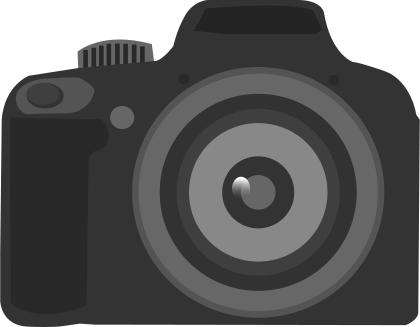 This features a black and white drawing of an old-fashioned camera. It is a close-up view of the lens, capturing the details of the camera's mechanism. The camera has a large lens that takes up most of the frame, with its focus on the viewer. The overall appearance gives off a vintage feel, reminiscent of an old-fashioned photography era.