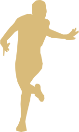 This features a silhouette of a person running, with their arms outstretched. The figure is in motion and appears to be jumping or leaping into the air. The silhouette is depicted against a light brown background, which adds depth and contrast to the scene. This artistic representation captures the dynamic nature of the individual's movement as they engage in physical activity.