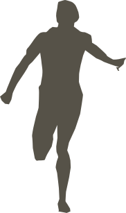 This features a silhouette of a person running, with their arms outstretched. They are wearing shorts and appear to be in motion. The silhouette is the main focus of the image, with no other details visible. This could be an artistic representation or a depiction of someone engaging in physical activity.