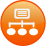 This features a large orange circle with an icon inside of it. This icon is likely used to represent a computer or technology-related concept, such as a network or file system. Inside the circle, there are several smaller circles arranged in a pyramid shape, which adds visual interest and complexity to the overall design. The arrangement of these smaller circles creates a sense of depth and organization within the larger orange circle, making it an appealing and recognizable symbol for technology-related topics.