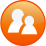 This features a circle with an orange background and two silhouettes of people inside it. These silhouettes are likely meant to represent friends or acquaintances, as they are often used in social media platforms such as Facebook and Twitter. The two figures appear to be standing close together, possibly indicating a strong bond between them. This image could be used for various purposes, including representing friendship or connection on websites or applications that utilize these types of icons.