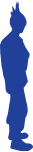 This features a blue silhouette of a person, possibly a man or woman, standing against a tan background. The figure appears to be wearing baggy clothes and has spiky hair. This unique design gives the impression that it is either a stylized drawing or an actual photograph with a distinctive color scheme. The contrast between the blue silhouette and the tan background creates a visually striking image, capturing the viewer's attention.